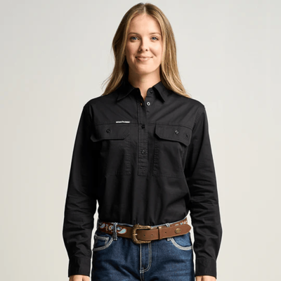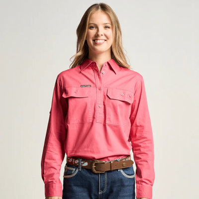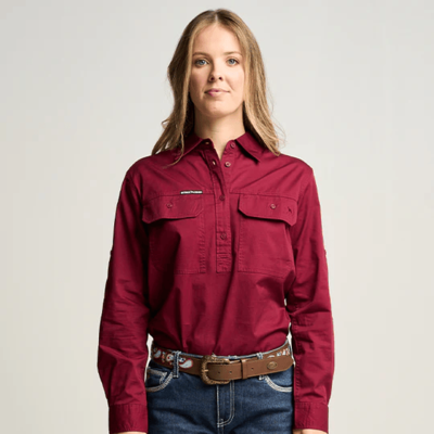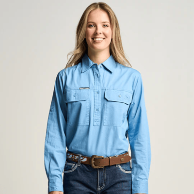 SOMERSET | Womens Half Button Long Sleeve Work Shirt- Royal
